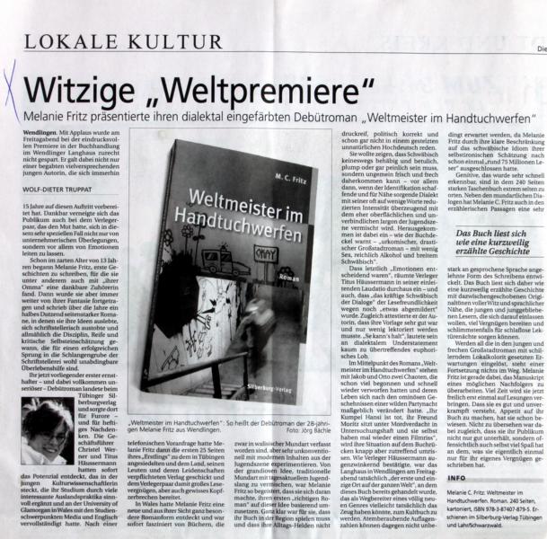 Sie sind hier: Startseite Presse Der TeckboteReutlinger GeneralanzeigerSüdwestpresse TübingenDer Teckbote 2 meine Bücher Lesungen