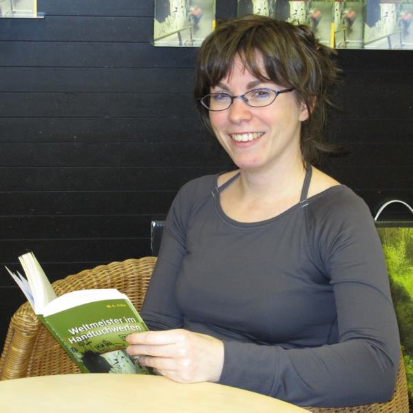 … erfindet Geschichten, die sie selber gern lesen würde, im Bücherregal aber nicht findet.